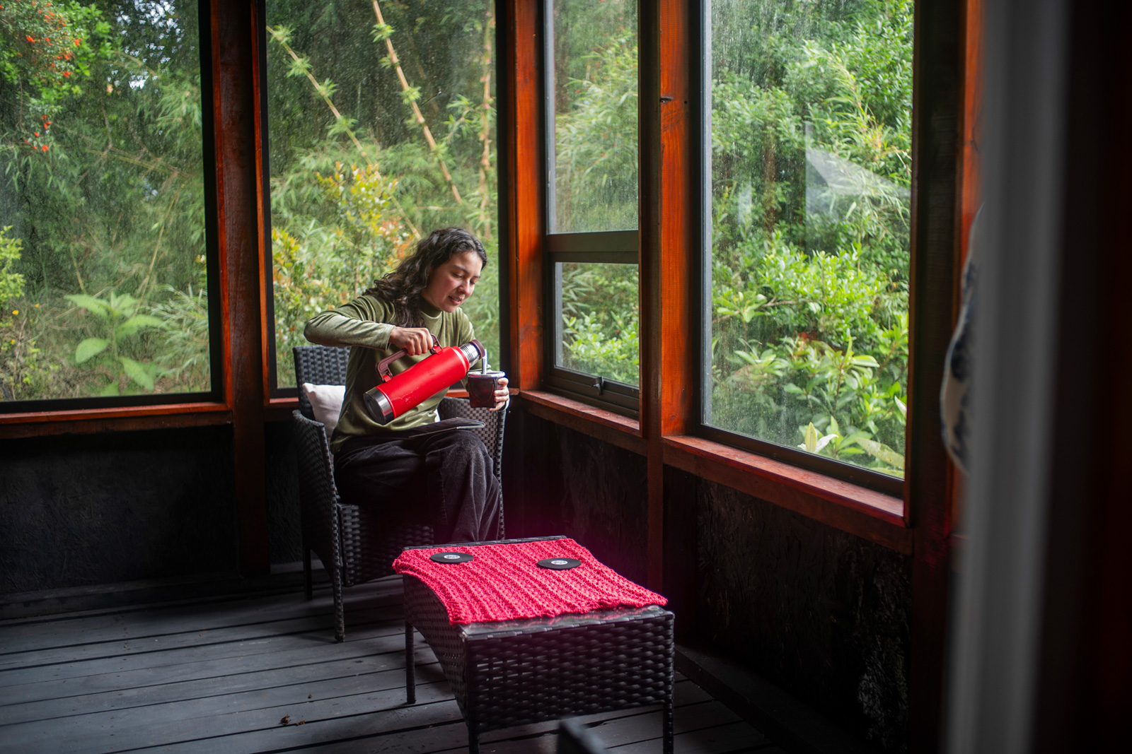 A veces solo necesitamos una pausa con la persona indicada. Anímate a vivir una experiencia única en Nuestras Cabañas. Disfruta una taza de café en la terraza con vista al Mar contemplando el Bosque y las Aves. Anímate, te espero!